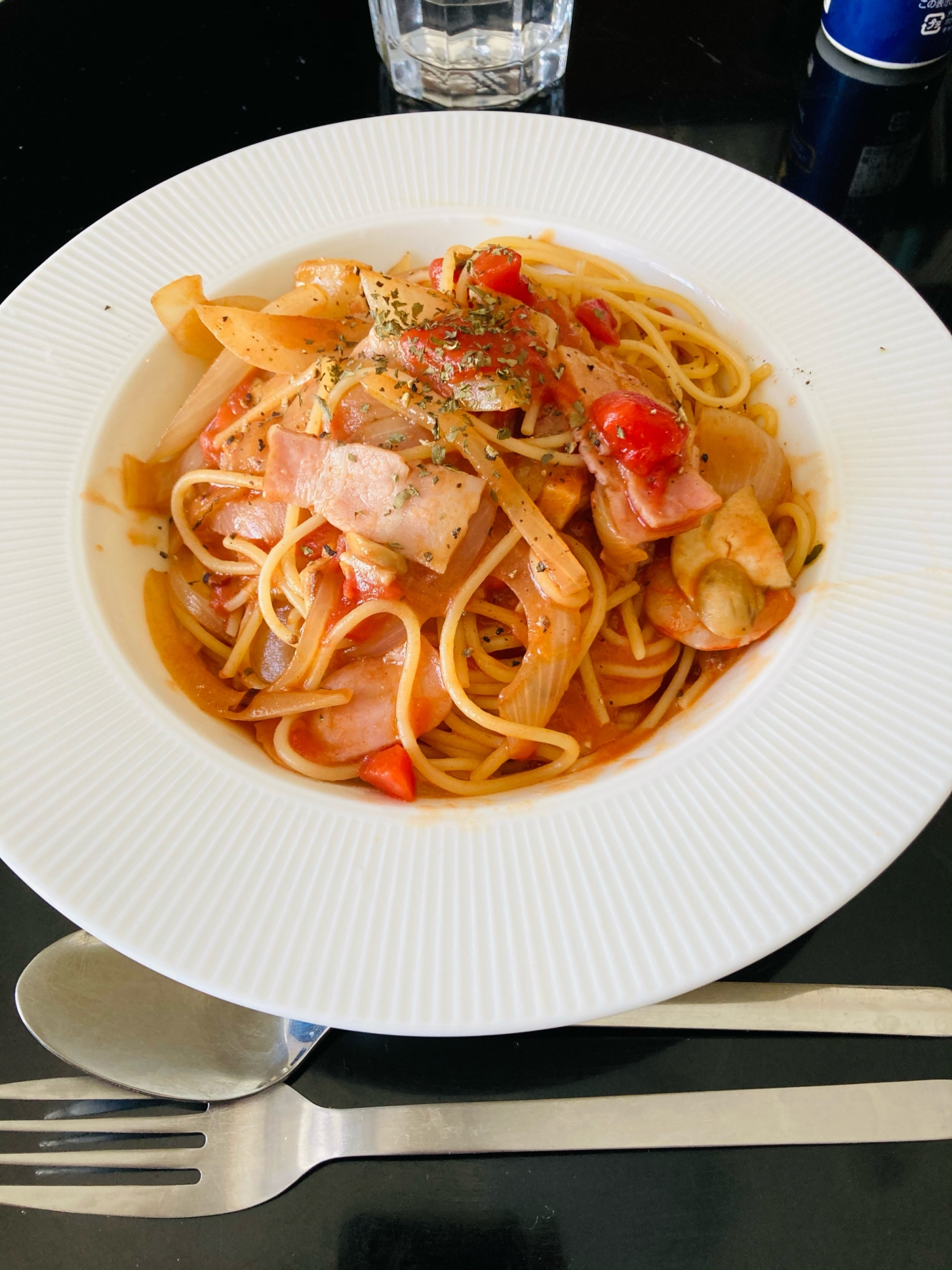 コストコムール貝のトマトパスタ こちゃのお料理onとoff